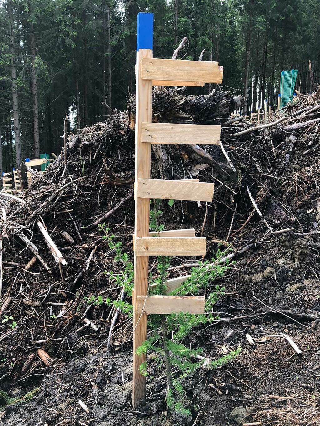 Der Baumwächter setzt auf nachhaltige, heimische Holzprodukte – idealerweise aus dem eigenen Wald. So entfällt nicht nur der aufwendige Abtransport nach der Nutzung, sondern auch der Einsatz umweltbelastender Materialien.